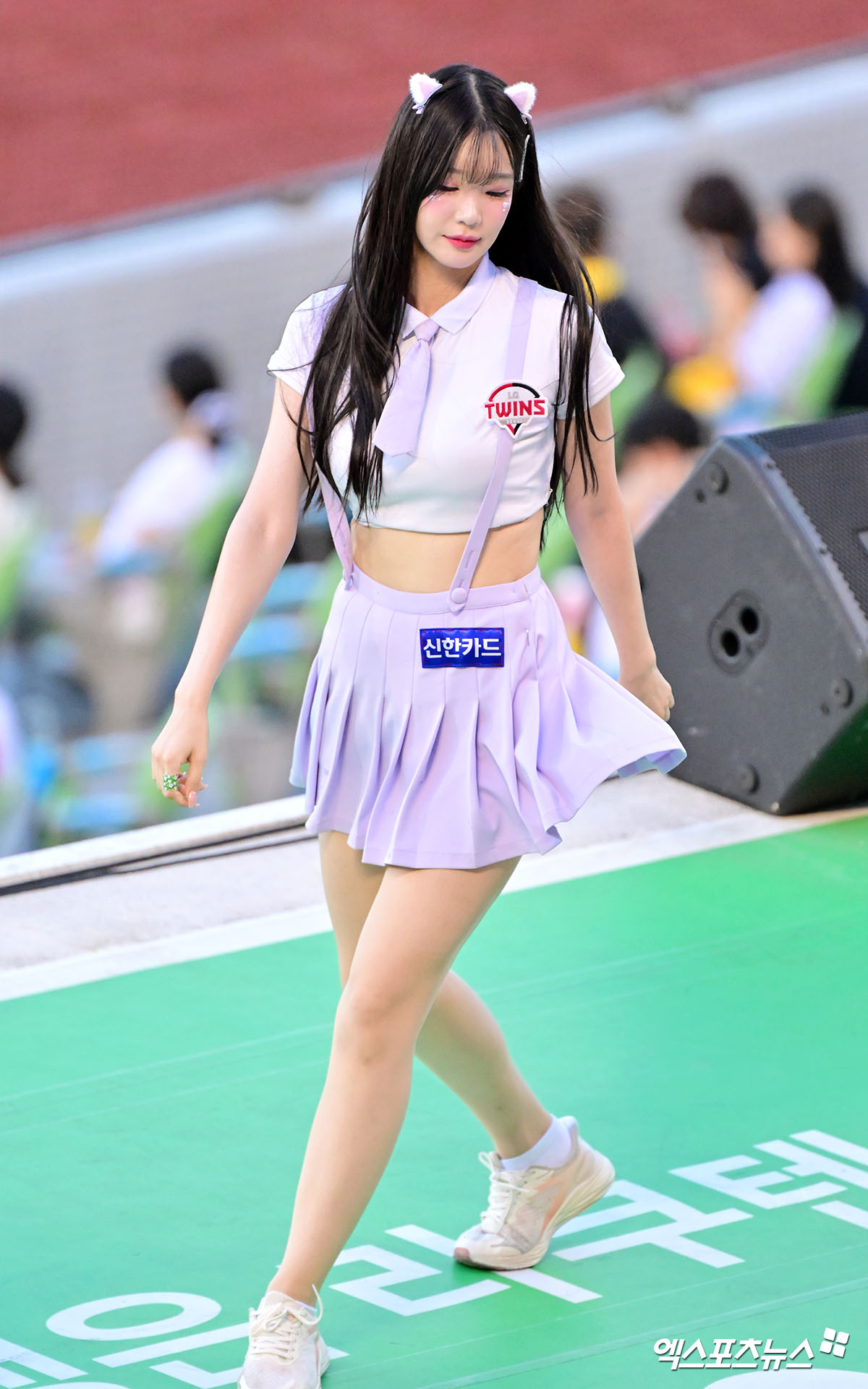 (엑스포츠뉴스 잠실, 김한준 기자) 30일 오후 서울 송파구 잠실야구장에서 열린 '2025 신한 SOL Bank KBO리그' 키움 히어로즈와 LG 트윈스의 경기, 계유진 치어리더가 멋진 공연을 선보이고 있다.