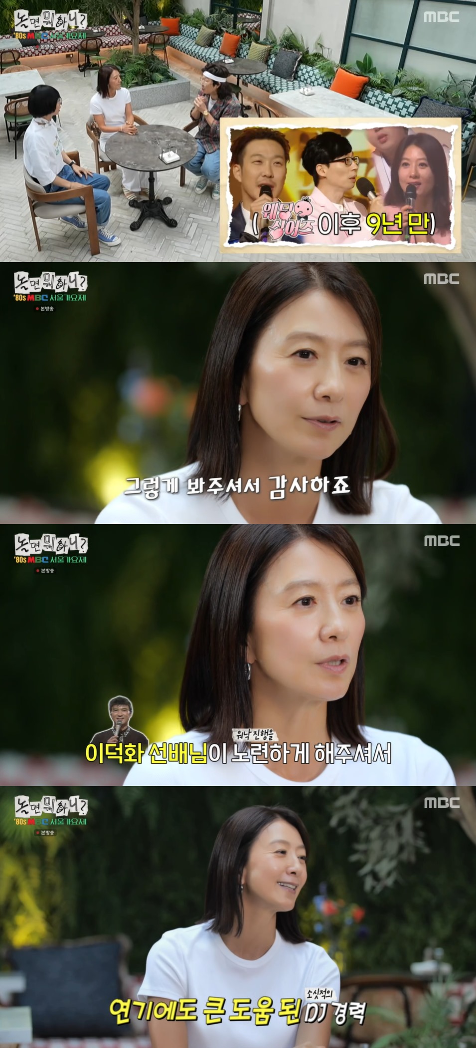 과거 가요제와 쇼 프로그램부터 공개방송 MC를 많이 한 김희애. 유재석이 "과거에는 생방송으로 쇼 프로그램들이 진행됐는데 에피소드가 있었냐. 당황한 적 없냐"라고 묻자, 김희애는 "크게 뭐. 별로 기억이 안 난다. 그래도 이덕화 선배님이 노련하게 해주셔서 부드럽게 넘어간 것 같다"라고 회상했다.