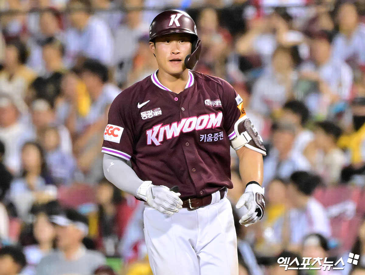 (엑스포츠뉴스 잠실, 김한준 기자) 30일 오후 서울 송파구 잠실야구장에서 열린 '2025 신한 SOL Bank KBO리그' 키움 히어로즈와 LG 트윈스의 경기, 8회초 1사 2,3루 키움 주성원이 2타점 적시타를 날리고 있다.