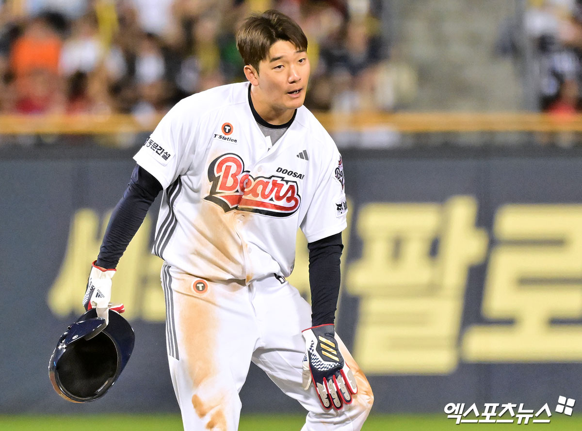 두산도 햄스트링 악령 찾아왔나? '4할 리드오프' 수비 중도 교체→"통증 경미, 병원 진료 계획 없다" [부산 현장]