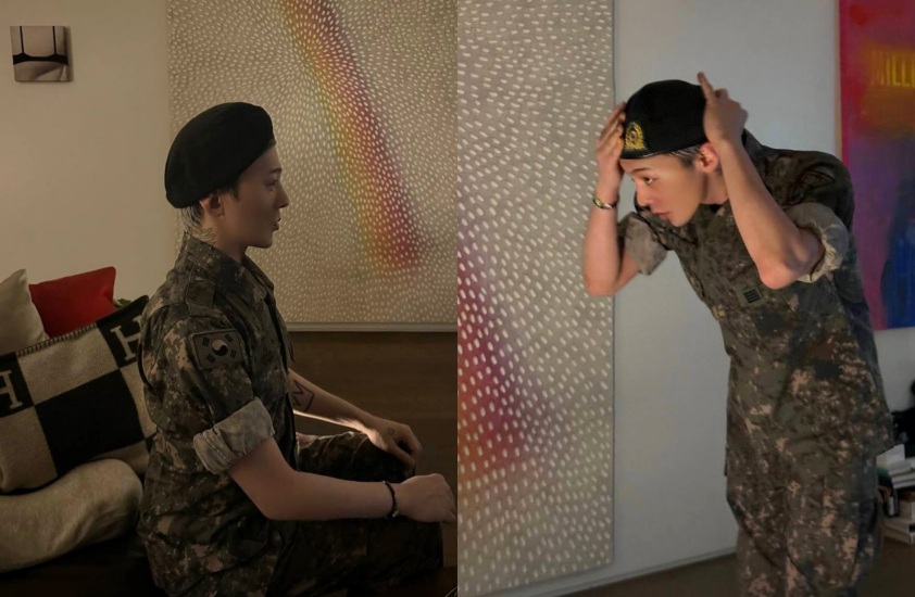 특히 군복을 입고있는 그의 비주얼이 시선을 모았다. 베레모 각을 잡으며 포즈를 취하는가 하면, 소파에 허리를 곧게 펴고 제대로 각잡힌 자세로 앉아있어 눈길을 끈다.