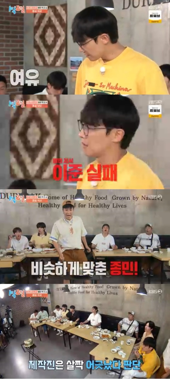 31일 방송된 KBS 2TV '1박 2일 시즌4'에서는 김종민, 문세윤, 조세호, 이준, 딘딘, 유선호가 데이식스와 강원도 여행을 떠나는 모습이 전파를 탔다.