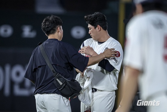 두산은 4회초 선두타자 양의지가 투수 강습 내야 안타로 출루했다. 이후 박준순이 우전 안타를 때린 가운데 양의지 타구에 오른쪽 어깨 부근을 맞은 나균안이 보호 차원에서 교체됐다.