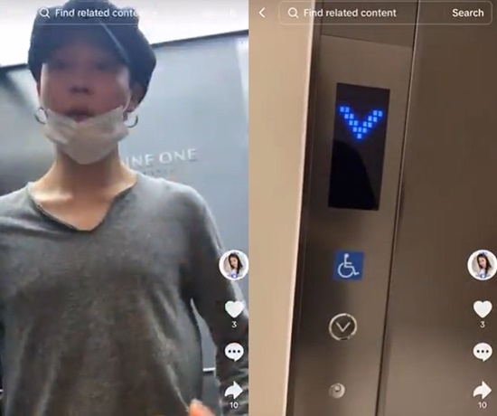 송다은이 공개한 영상에는 엘리베이터에서 내린 지민이 송다은을 반기는 모습이 등장하며 이들이 연인 사이임을 짐작하게 했다.