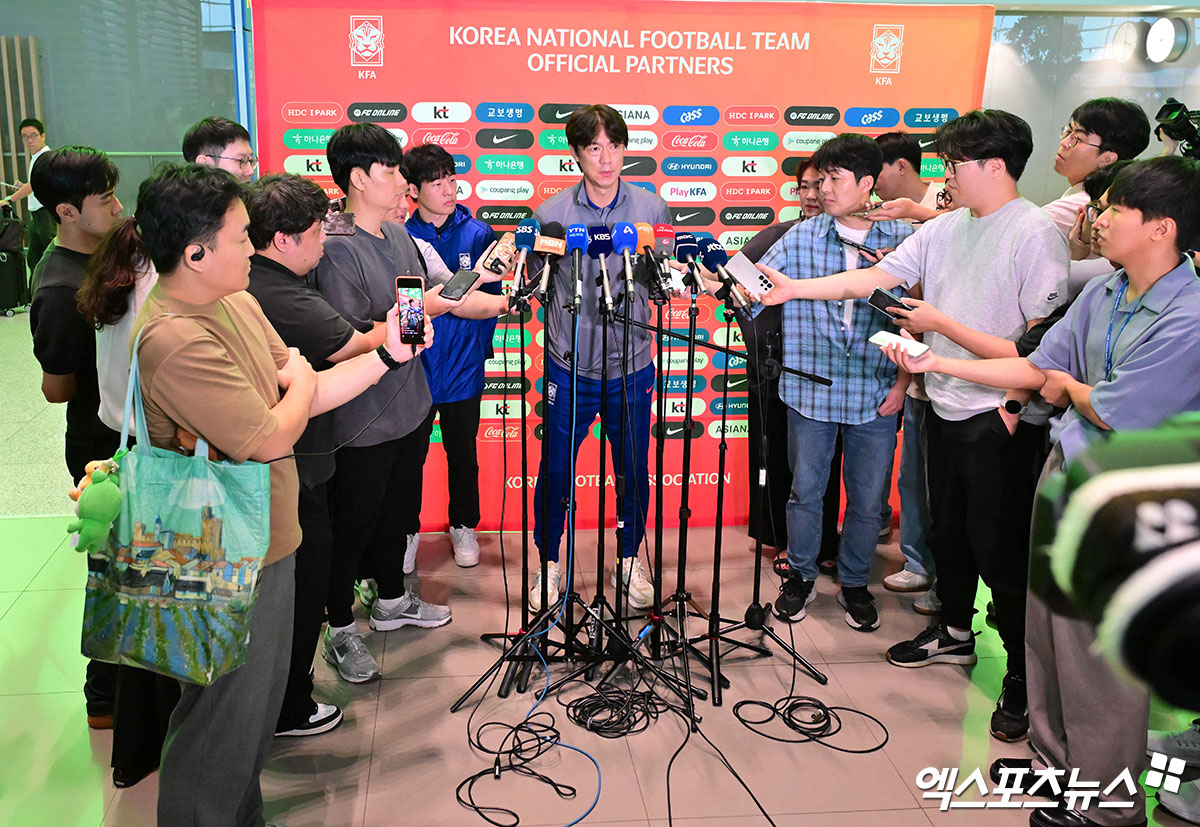 (엑스포츠뉴스 인천공항, 김현기 기자) 홍명보 대한민국 축구대표팀 감독이 손흥민 주장 교체 논란과 관련해 여러 가능성을 거론한 것이라며 다소 유보적인 태도를 보였다.