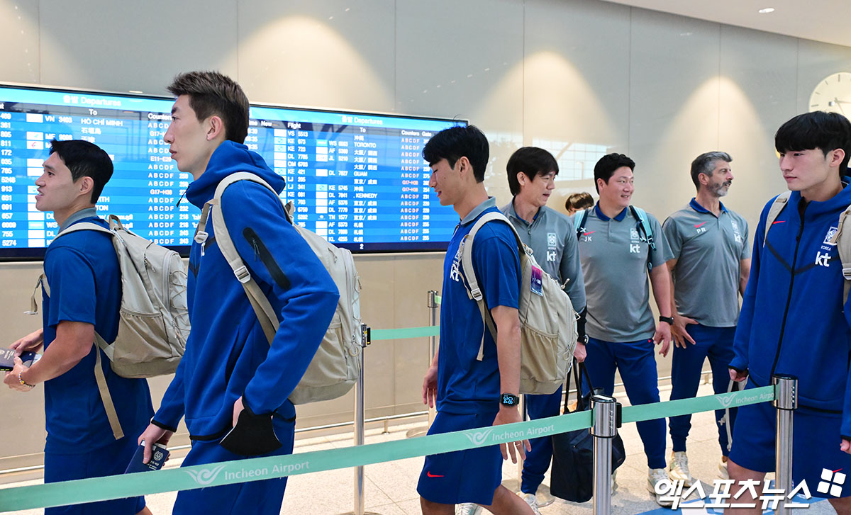 홍 감독이 이끄는 축구대표팀은 1일 인천국제공항을 통해 출국했다. '홍명보호'는 오는 7일 미국 뉴저지의 스포츠 일러스트레이티드 스타디움에서 미국과 이달 A매치 브레이크 첫 평가전을 치른다.