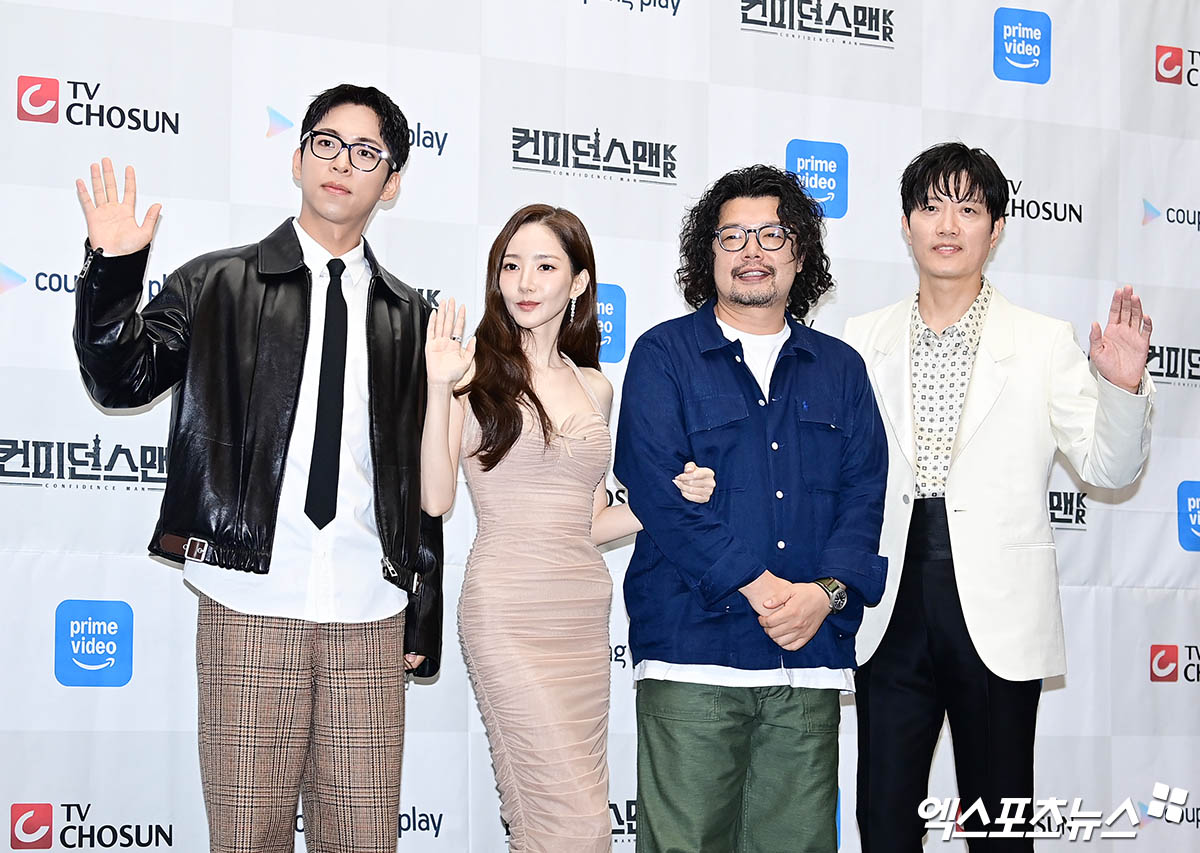 1일 서울 마포구 상암동 스탠포드호텔에서 TV조선 새 주말드라마 '컨피던스맨 KR' 제작발표회가 진행됐다. 이 자리에는 배우 박민영, 박희순, 주종혁과 남기훈 감독이 참석했다.