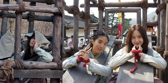 윤아는 '소라게' 제스쳐를 하며 꼬질꼬질한 모습으로 칼을 찬 채 대기하는 모습도 담았다. 오랏줄에 묶여 압송되는 장면을 대기하는 장면에서도 묶인 손으로 하트를 하는 모습에 네티즌들은 웃음을 터트렸다.