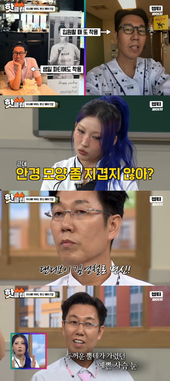 이날 이사배는 같은 디자인의 안경을 오랫동안 착용하는 김영철에게 태가 휘어지는 무테 안경을 추천해줬고, 해당 안경을 착용한 김영철은 멤버들은 물론 스태프들로부터도 멋져보인다는 탄성을 자아냈다.