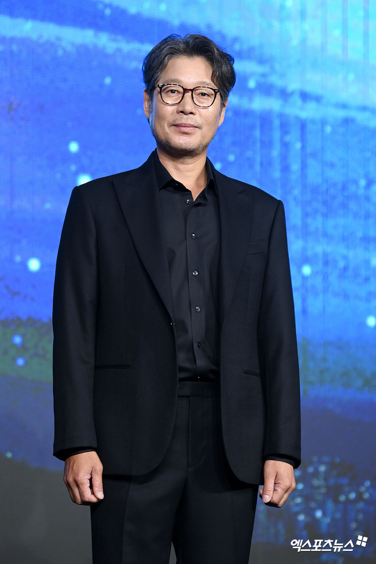 배우 유재명이 제작발표회에 참석해 포토타임을 갖고 있다.