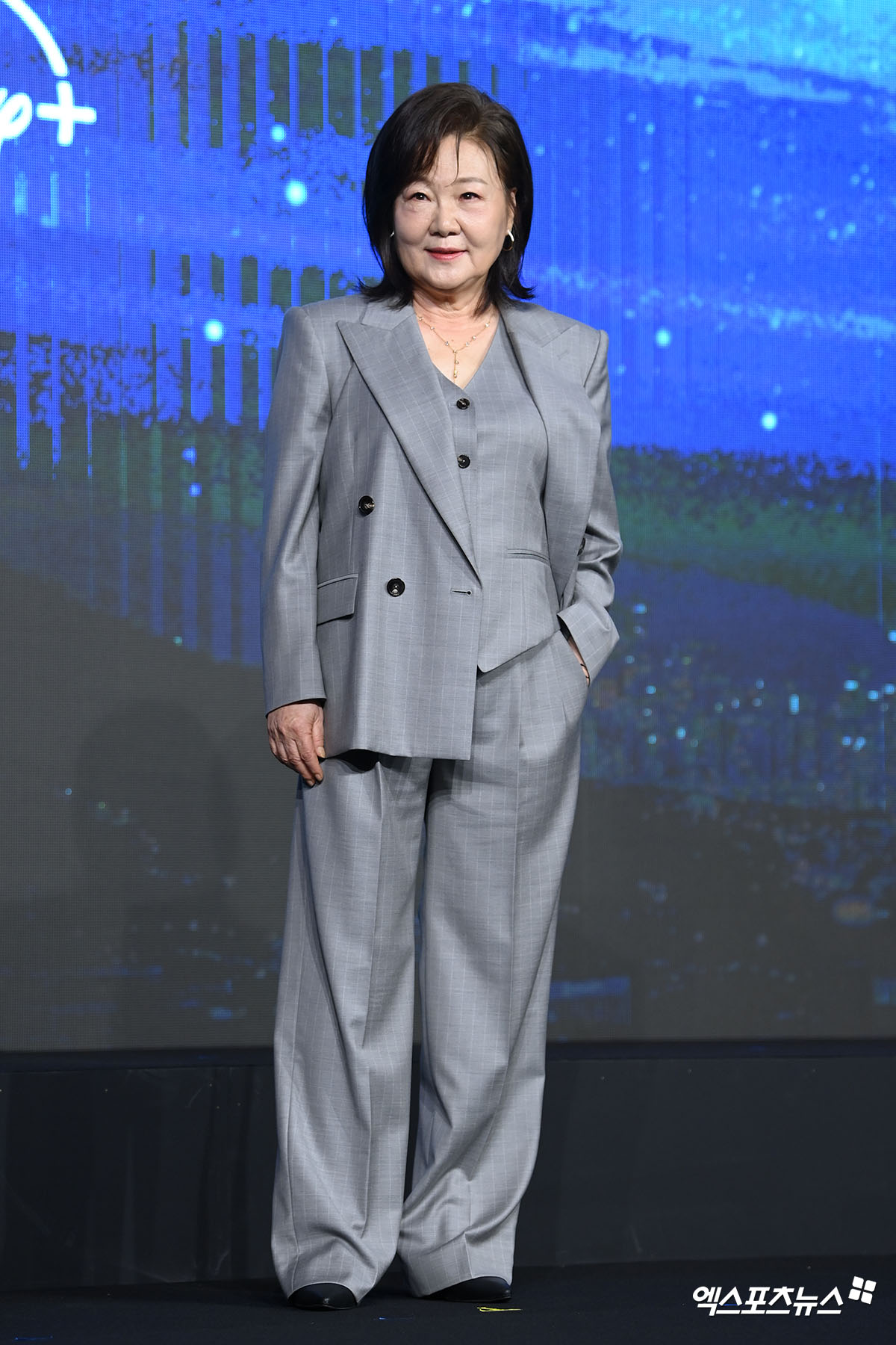 배우 김해숙이 제작발표회에 참석해 포토타임을 갖고 있다.