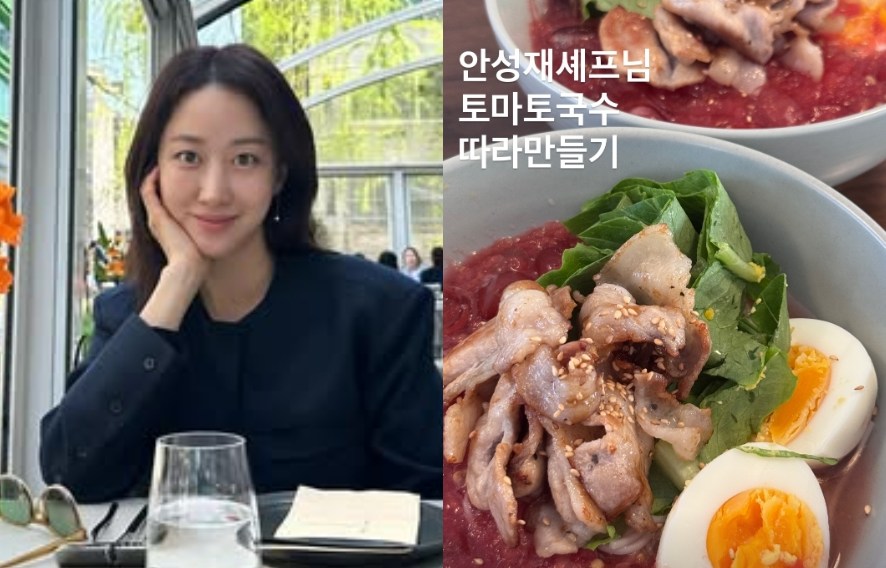 공개된 사진에는 전혜빈이 안성재 셰프의 레시피를 따라 만든 것으로 보이는 토마토국수 두 그릇이 담겨 군침을 자극했다.