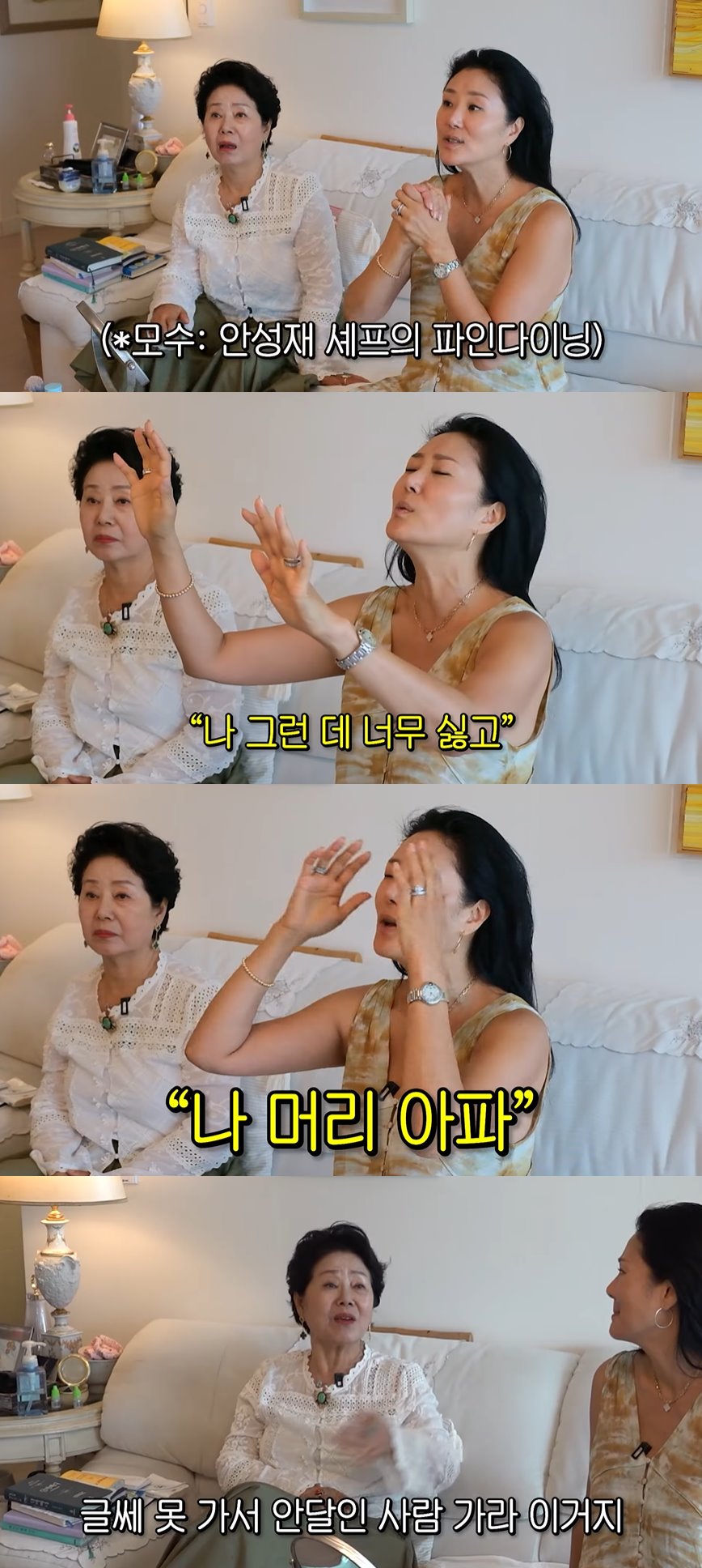 선우용여는 "얘가 서울에 와서 서울에 그런 집이 있다더라. 저녁에 40만 원인"이라고 말했고, 최연제는 "안성재 셰프님의 모수를 너무 모시고 싶어서 '엄마 이왕 온건데 한 번 (가보자)'라고 말하니 '연재야 나 너무 싫어. 그런데 너무 싫고 나 머리아파' 그러시는거다"라며 거절했다고 전했다.