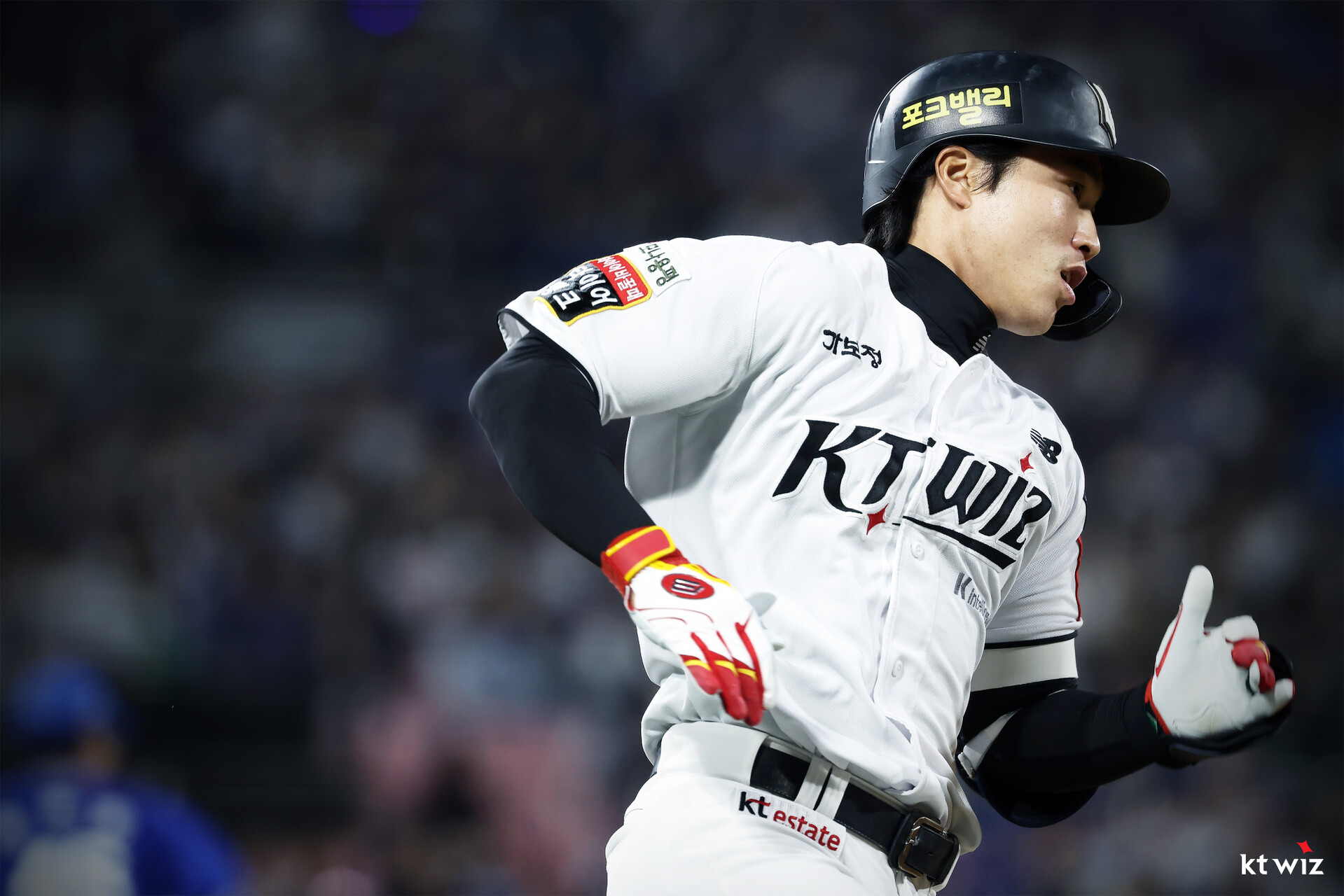이어진 2사 2루 상황 장성우가 바뀐 투수 윤성빈의 5구째 몸쪽 154km/h 패스트볼을 공략, 좌측 담장을 넘기는 투런포로 연결하면서 KT가 7-2까지 리드를 넓혔다.