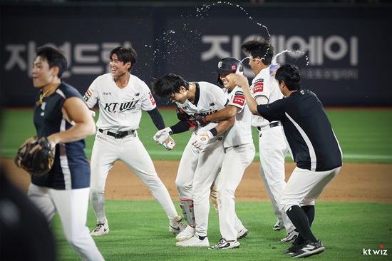 KT는 3일 수원KT위즈파크에서 열린 2025 신한 SOL Bank KBO리그 롯데 자이언츠와의 홈경기에서 9-8 끝내기 승리를 거뒀다.
