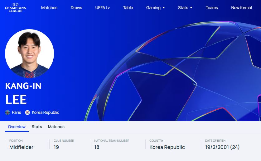 UEFA는 4일(한국시간) 36개 참가 팀의 대회 리그페이즈 출전 명단을 공식 발표했으며, PSG 스쿼드에는 이강인이 포함됐다. 챔피언스리그 규정상 각 팀은 최대 25명의 선수만 출전 등록이 가능하다.