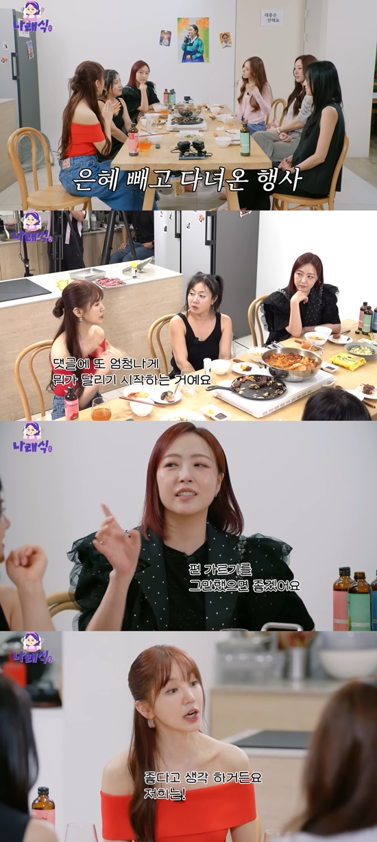 또 "얼마 전에 언니들 4명이서 좋은 행사를 하고 왔다. 근데 거기에 제가 포함이 안 돼 있으니까 댓글에 뭐가 엄청나게 달리기 시작했다"라며 왕따설을 언급했다. 심은진은 "왜 우리한테만 그러는지 모르겠다. 다른 팀은 빠져도 아무 말도 안 하던데. 편 가르기를 그만했으면 좋겠다. 4대1도 아니고"라며 억울한 마음을 토로했다.