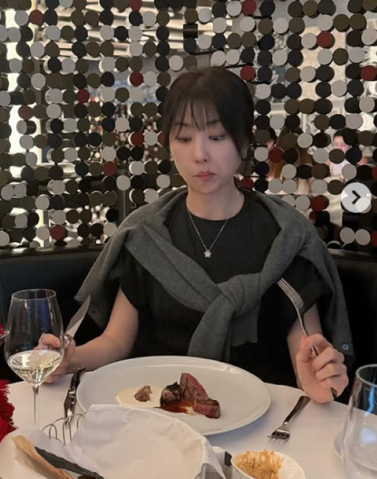 이어진 사진에서 박하선은 나이프와 포크를 쥔 채 열심히 음식을 씹고 있다.