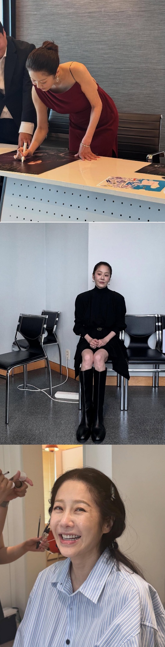 드라마 포스터에 자신의 친필 사인을 남기는 모습과 제작발표회를 위해 헤어스타일링 완성 전의 모습까지 과감하게 공개한 그는 올블랙 원피스와 부츠로 또 다른 매력을 뽐내 감탄을 자아낸다.