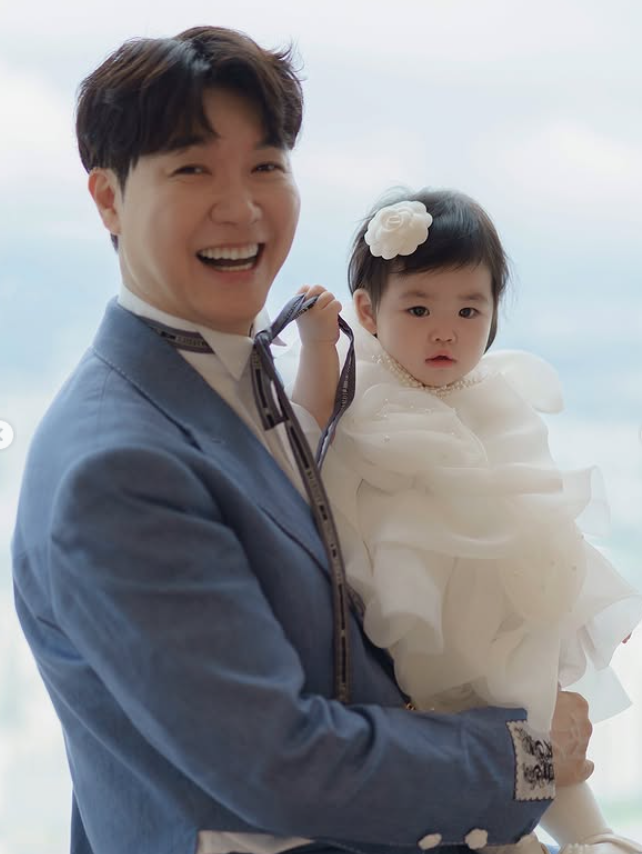 또한 푸른빛 슈트를 입고 있는 박수홍은 그런 딸을 안고 행복한 듯 발게 웃고 있어 훈훈함을 더한다.