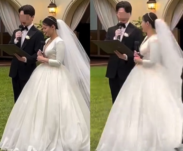 공개된 영상에는 3년 전 웨딩드레스를 입은 김수민이 남편과 예식을 올리는 장면이 담겼다. 순백의 드레스를 입은 김수민은 단아하면서도 우아한 자태를 뽐냈고, 서로를 바라보며 미소 짓는 부부의 모습에서 행복이 묻어났다.