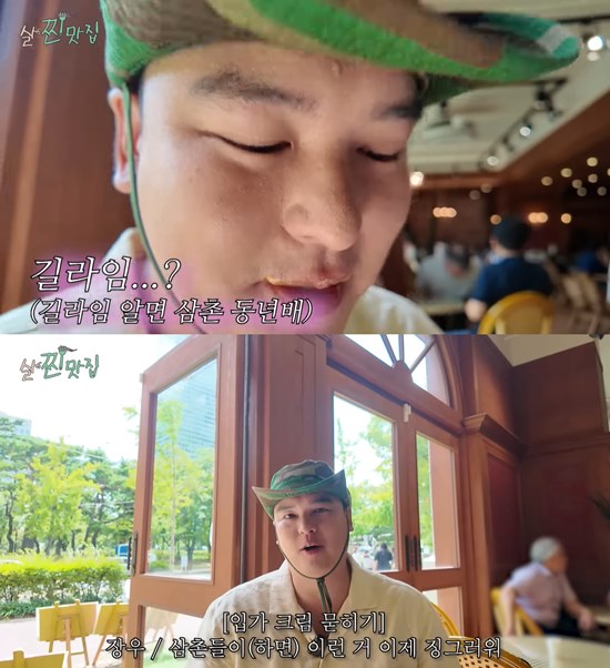 카페 투어에 나선 이장우는 커피를 마시며 입가에 크림을 잔뜩 묻힌다. 이장우는 카메라를 가까이 대는 PD에게 "삼촌이 이런 거 하면 징그럽다. 구독자분들이 징그러워한다"며 입가를 닦아 제작진들을 웃게 만들었다.