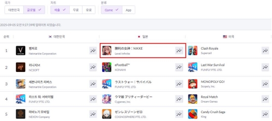 (엑스포츠뉴스 이정범 기자) '승리의 여신: 니케'가 글로벌 매출 순위 역주행에 성공했다.