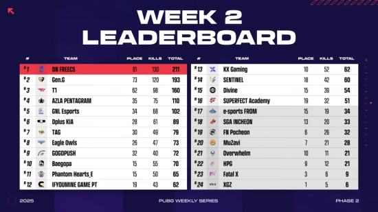 (엑스포츠뉴스 이정범 기자) DN 프릭스가 'PWS 페이즈2' 위클리 스테이지 2주 차 종합 1위에 올랐다.