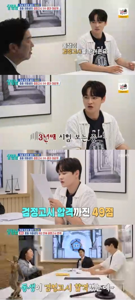 6일 방송된 KBS 2TV '살림하는 남자들 시즌2'에서는 박서진 동생 박효정의 세 번째 검정고시 결과가 공개돼 눈길을 끌었다.