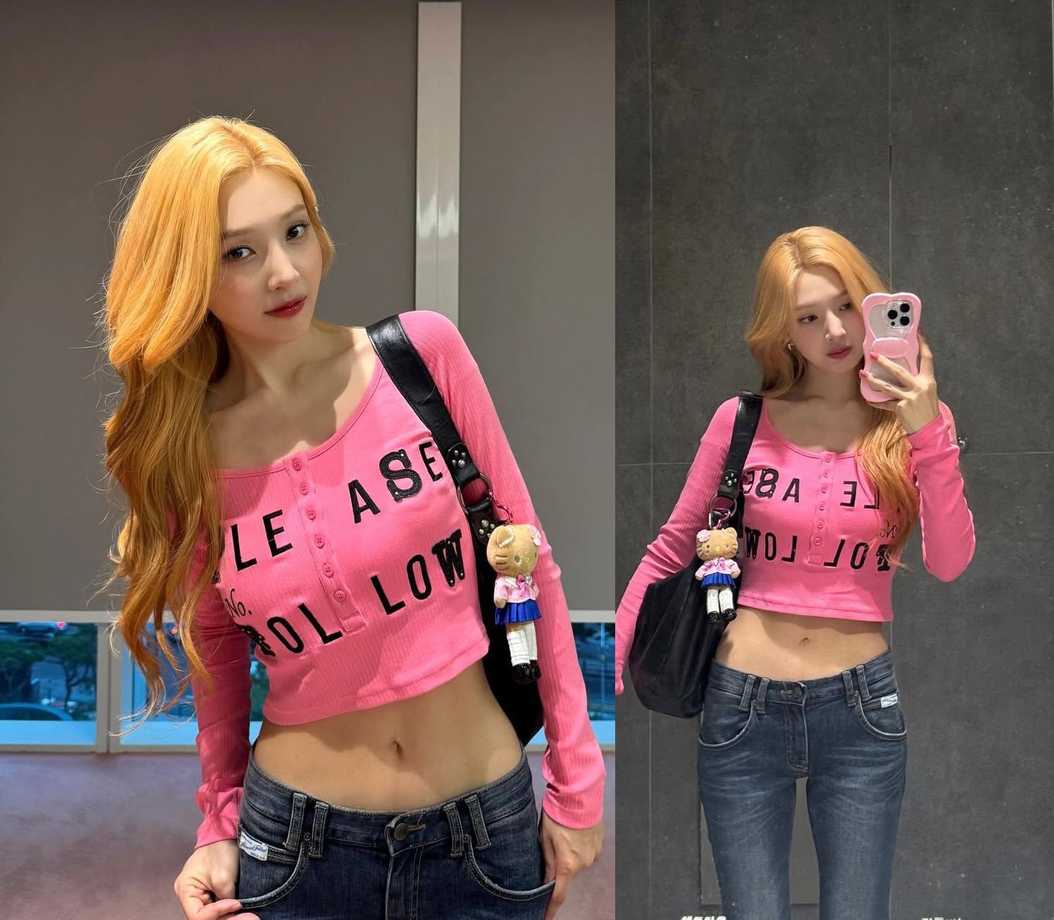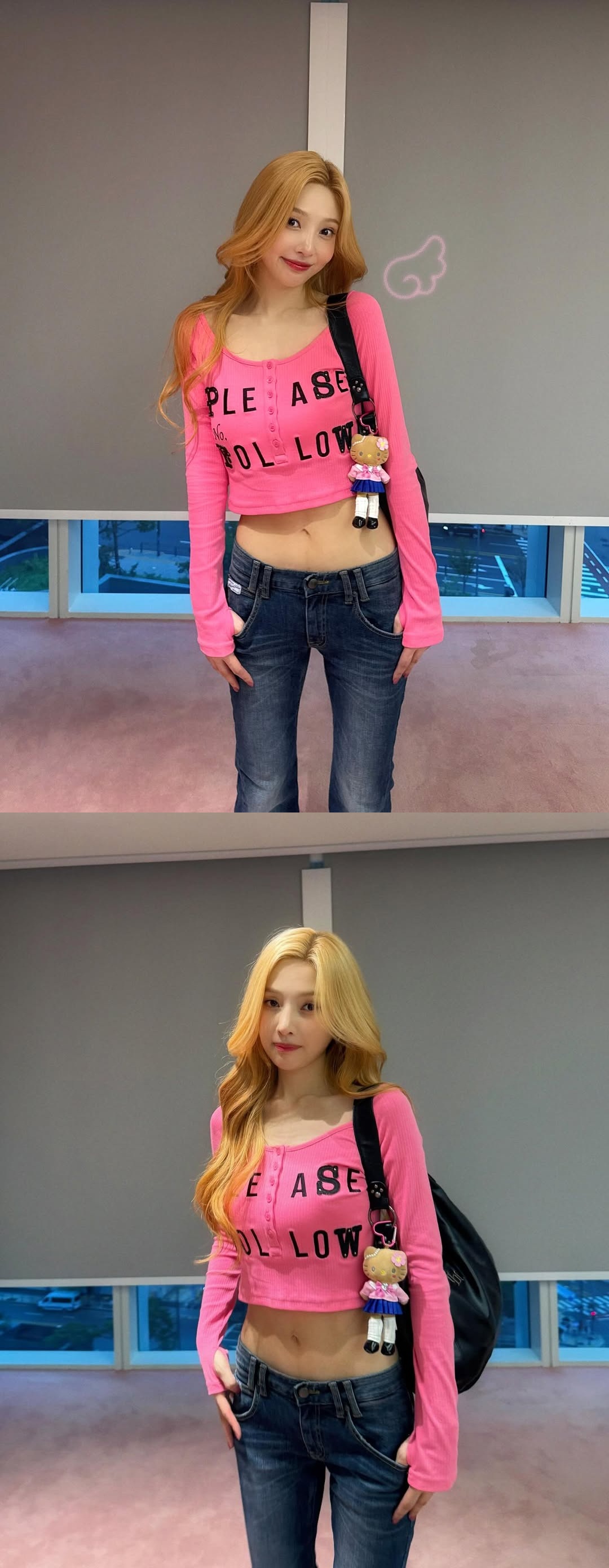 공개된 사진 속 조이는 비비드한 핑크 컬러 크롭 카디건에 데님 팬츠를 매치해 발랄하고 러블리한 패션을 선보였다. 또한 크롭 기장의 상의와 로우웨스트 진으로 잘록한 허리 라인과 복근을 강조해 팬들의 마음을 울렸다.