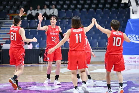 일본 후지쓰 레드웨이브가 7일 부산 사직체육관에서 열린 '2025 BNK 금융 박신자컵' 결승전에서 같은 일본의 덴소 아이리스를 79-65로 제압했다.