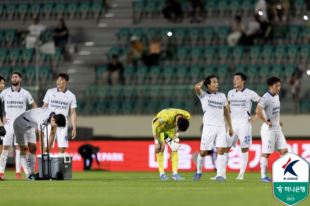 수원은 그나마 성남전에서는 후반 추가시간 터진 두 번의 극장골로 간신히 승점 1점을 챙겼지만, 부산전에서는 수적 열세를 극복하지 못하고 시즌 6번째 패배를 기록했다. 두 경기 연속 기적은 없었다.