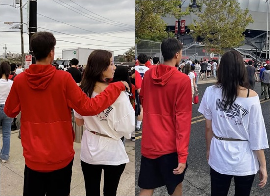이들은 7일 미국 뉴저지주 해리슨 스포츠일러스트레이티드 스타디움에서 열린 한국 대 미국 친선경기를 관람하기 위해 경기장을 찾았다. 손태영은 자신이 담은 축구 국가대표팀의 영상을 공개하기도 했다.