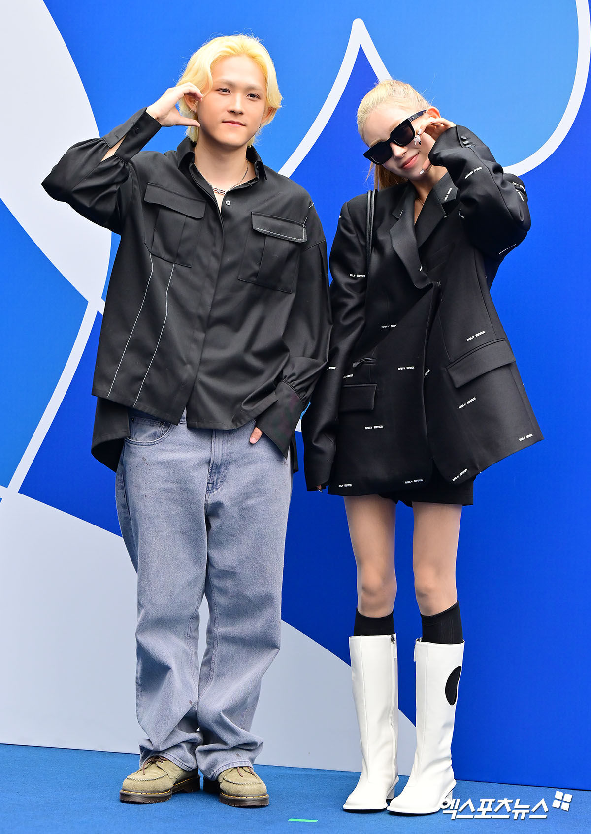 포토월에 선 두 사람은 하트를 해달라는 기자의 요청에 머뭇거리더니, 결국 각자의 볼에 하트 포즈를 해 웃음을 자아냈다.