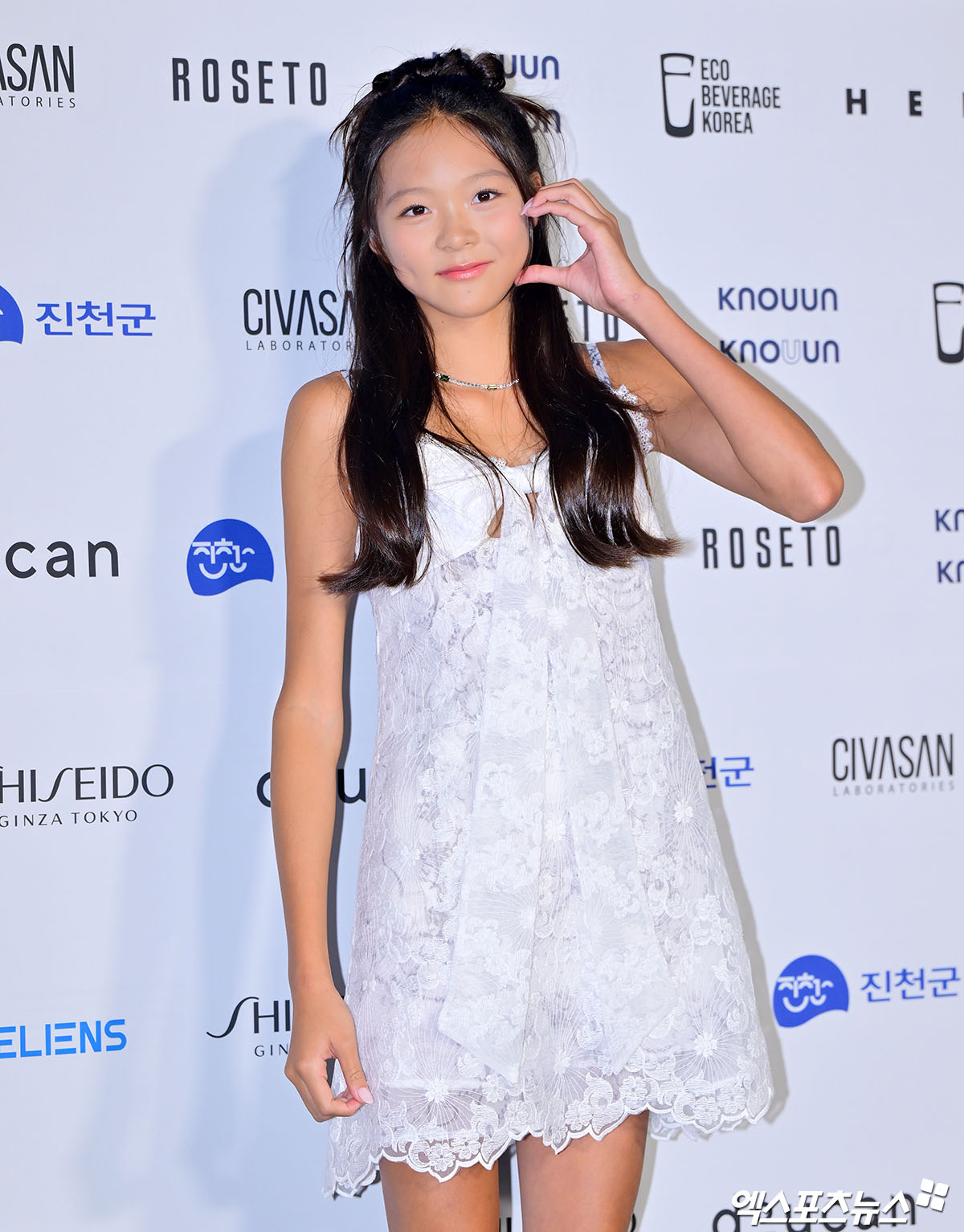 특히 추사랑은 플라워 패턴의 화이트 레이스 원피스를 착용해 청순한 분위기를 자아냈다. 반묶음 헤어스타일링으로 10대 소녀다운 발랄한 느낌을 한껏 살렸다. 굽이 높지 않은 신발을 착용해 안정감을 주기도 했다.