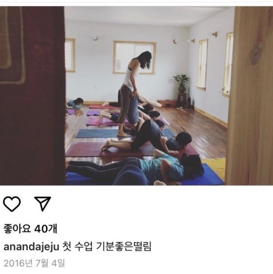또한 "제주에서는 예약 없이 편안하게 오고 가는 아난다 요가원이었는데요. 서울에서는 부득이하게 예약제로 운영하게 됐다. 이 열기 또한 가라앉고 잠잠해질 거다. 그때까지 저도, 오시는 분들도 지치지 않고 들뜨지 않게 늘 해왔듯 차분히 수련 이어가겠다"고 말했다.