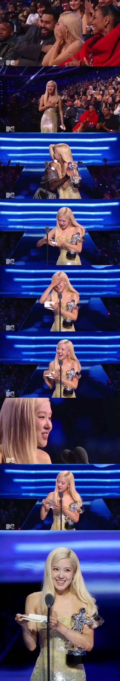 수상 소감을 말하던 중 한국어로 프로듀서 테디와 블랙핑크 멤버들을 한국어로 언급하기도 해 눈길을 끌었다. 로제는 "테디 오빠 저 상탔어요"라며 "블랙핑크 멤버 지수, 제니 그리고 리사. 멤버들 저 상 탔어요. 늘 고맙고 너무 사랑하고요"라며 미소 지었다. 'MTV VMA'에서 대상 격인 올해의 노래 상을 수상하며 한국어로 의미 있는 수강 소감을 전해 감동을 안겼다.