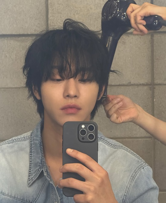 다음으로 게시된 사진에서는 머리를 세팅하는 스태프의 손길을 받으며 거울 셀카를 촬영하는 안효섭의 모습이다.