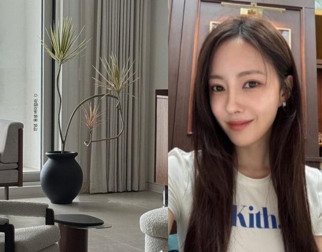 9일 효민은 개인 채널에 "우리집 새 식구♡ 너무 아름답다"라는 문구와 함께 거실 한 편에 자리 잡은 구아바 나무와 동생 바이칼라를 자랑했다.