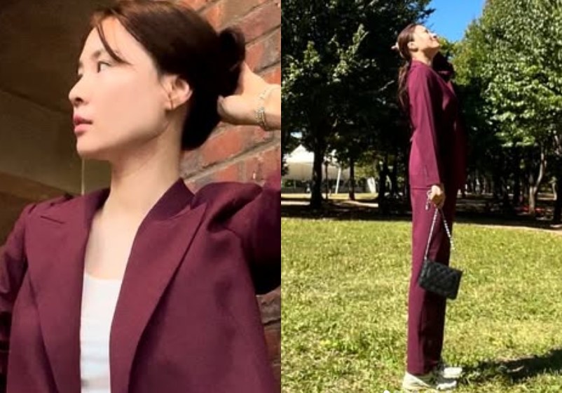 사진 속 진아름은 버건디색 수트를 입은 채 포즈를 취하고 있다. 진아름은 모델다운 174cm의 황금 비율과 쭉 뻗은 각선미로 시선을 사로잡았다.