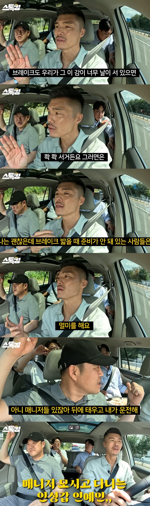 김영광은 "브레이크도 우리의 감이 너무 날이 서 있으면 콱 콱 선다. 그러면 나는 괜찮은데 브레이크 밟을 때 준비가 안 돼 있는 사람들은 멀미를 한다"고 설명했다.