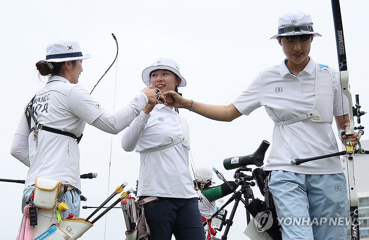 안산(광주은행), 강채영(현대모비스), 임시현(한국체대)으로 구성된 여자 양궁 대표팀이 10일 광주 5.18 민주광장 특설 경기장에서 진행된 리커브 여자 단체 동메달 결정전에서 인도와 팽팽한 경기 끝에 5-3(54-51,57-57,54-57,58-56)로 승리하며 동메달을 얻었다.