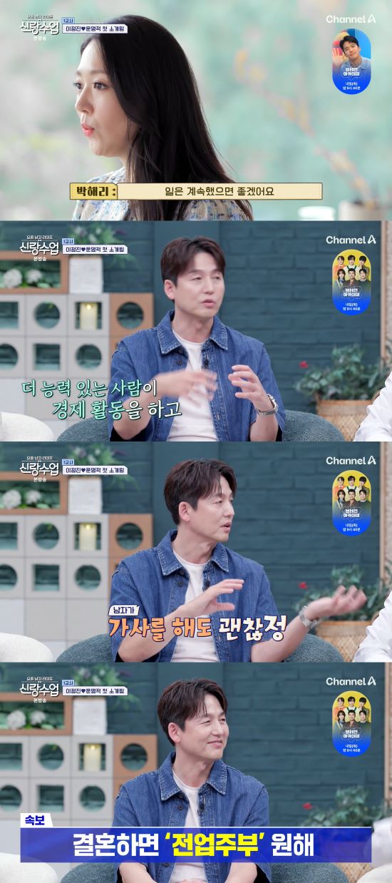 이정진은 "부부 사이에 여성 분이 일을 더 잘 하면 '당신이 경제적인 일을 하라. 난 집안일을 하겠다'라고 할 수 있다"라며 결혼 가치관을 밝혀 눈길을 끌었다.