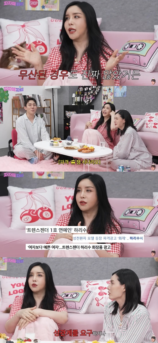 하리수는 10일 유튜브 이게진짜최종 채널 웹예능 '파자매 파티'에 게스트로 출연해 대한민국 1호 트렌스젠더 연예인으로서의 삶에 대해 이야기했다.