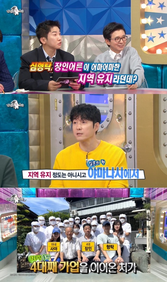 이날 심형탁은 장인이 어마어마한 지역 유지라는 말에 "지역 유지 정도는 아니고, 야마나시라는 곳에서 유명하시다. 120년 동안 4대째 면 공장을 하신다. 호우토우 면이라고 칼국수 비슷한 전통 면이 있다"고 말헀다.