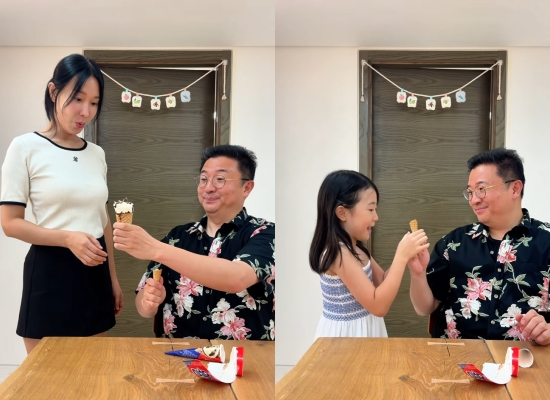 영상의 반전은 그다음이었다. 알고 보니 책상 밑에 새 아이스크림이 있었고, 문재완은 새 아이스크림을 혼자 다 먹겠다는 장난스러운 표정을 지어 웃음을 자아냈다. 콩트도 재밌게 담아내는 이지혜 문재완 가족의 화기애애한 분위기가 눈길을 끌었다.