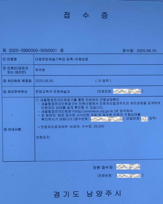 이는 저의 미숙함에서 비롯된 일로, 어떠한 변명도 할 수 없는 부분입니다. 실수를 인지한 후 곧바로 보완절차를 밟아 2025년 9월 10일, 대중문화예술기획업 등록신청을 마쳤고, 현재 등록을 기다리고 있는 상태입니다.
