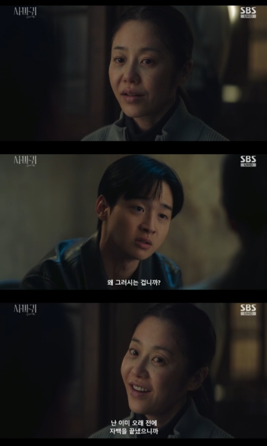 12일 방송된 SBS 금토드라마 '사마귀 : 살인자의 외출' 3회에서는 차수열(장동윤 분)이 정이신(고현정)의 추가 살인을 의심해 추궁하는 모습이 그려졌다.