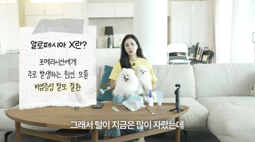 그러면서 반려견들에게 건강 이슈가 많았다고 털어놓았다. 한 마리는 알로페시아X로, 한 마리는 키아리 유사 기형으로 고생했다는 것. 알로페시아X는 포메라니안에게 주로 발생하는 원인 모를 비염증성 탈모 질환이다.