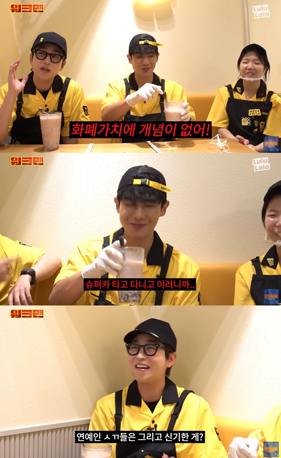 앞서 딘딘은 '워크맨'에 출연해 MC 이준과 함께 카페에서 아르바이트를 했다. 이준은 카페 지점장에게 "지금 많이 버실 것 같은데. 월 천만 원 찍지 않냐. 지점장인데"라고 물었다.